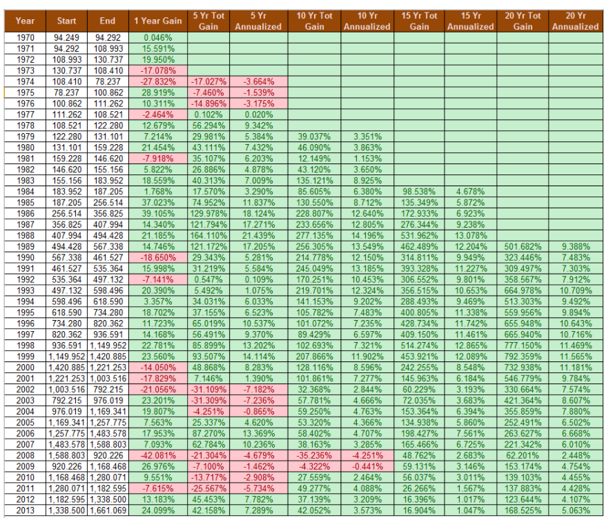 Per ottenere buoni rendimenti è fondamentale non farsi contagiare da questi sentimenti controproducenti e rimanere lucidi. Ma come fare? In queste situazioni può aiutare volgere uno sguardo al passato, analizzando l'andamento dell'indice msci world dal 1970 a 2013.